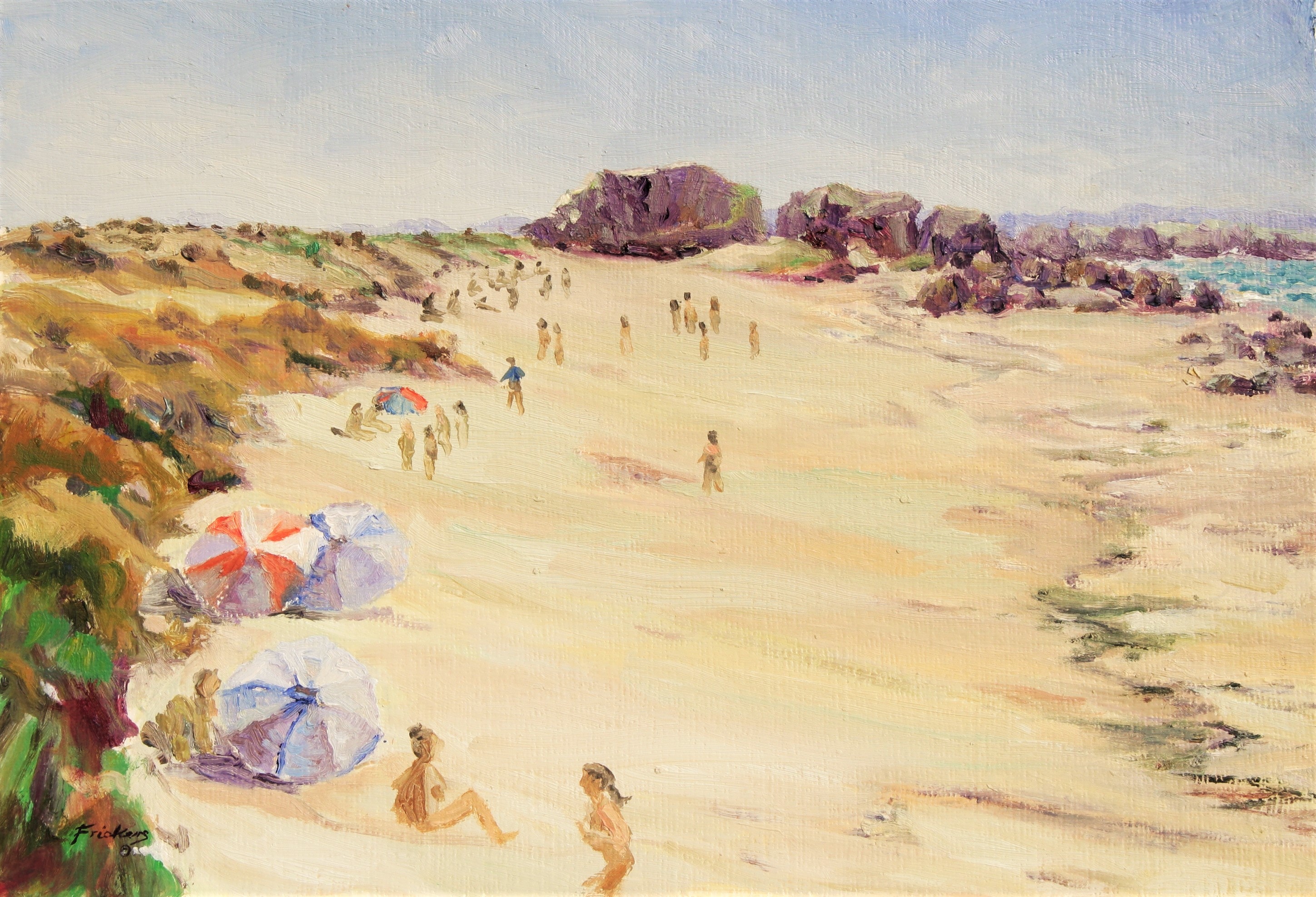 Nudists beach at Meneham, Brittany, a joyous summer painting with all the freshness of being created on location.