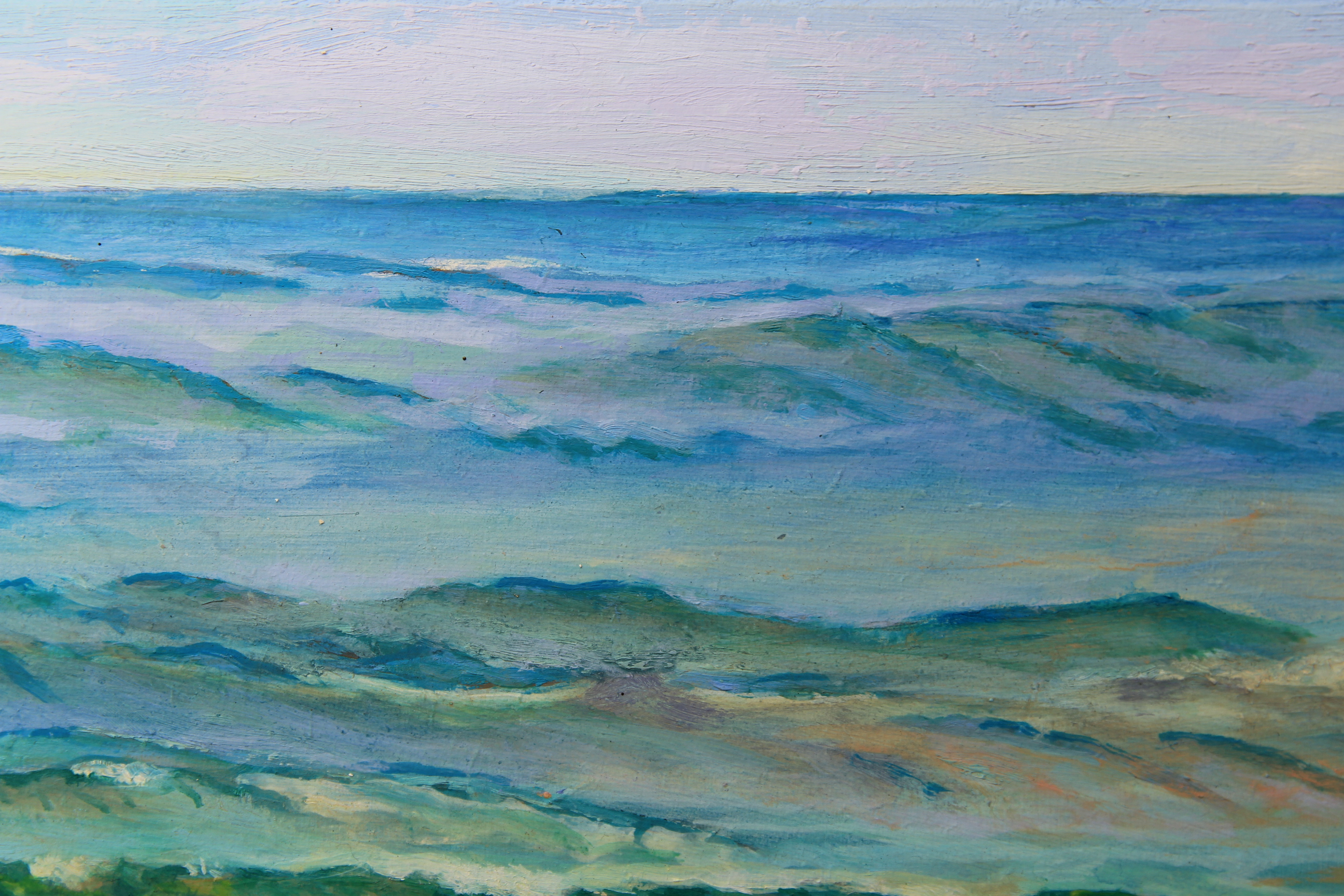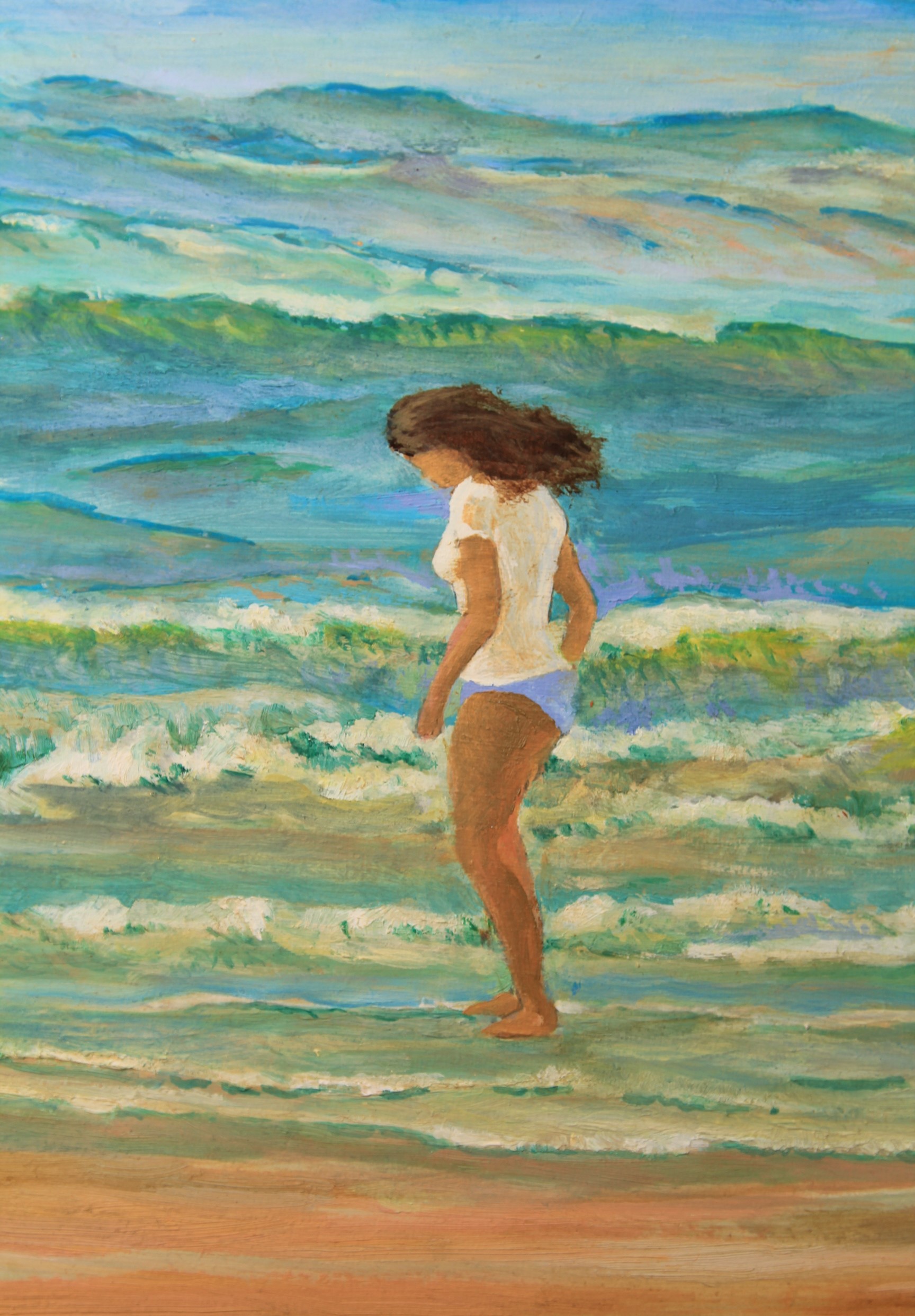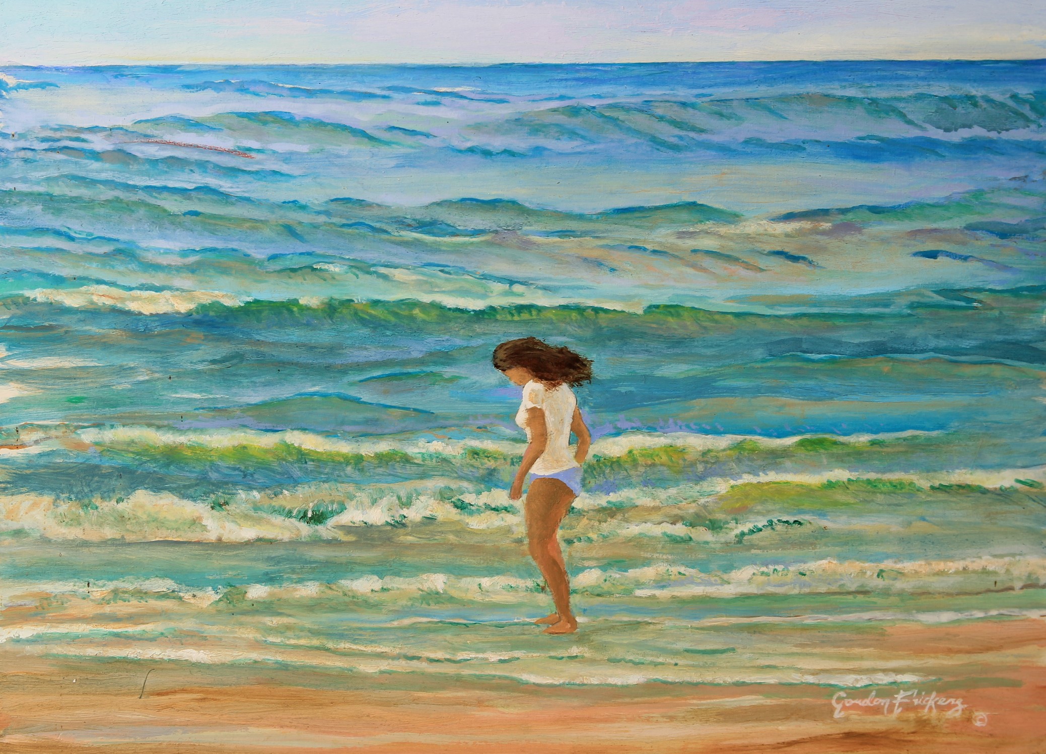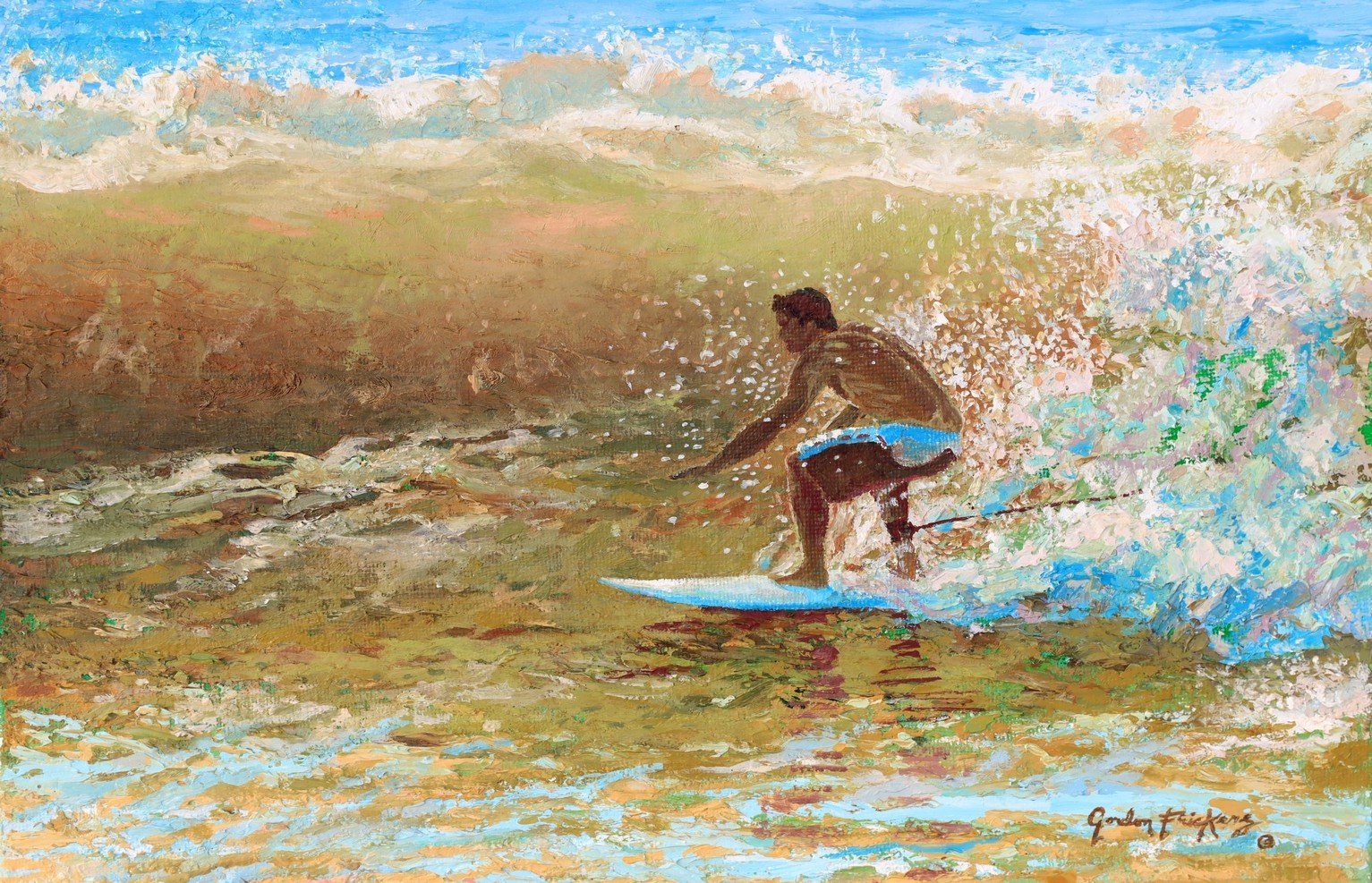 Surfing, 40 x 60 cm (16″ x 24″) 1500 £, painted from a series of studies made on location.